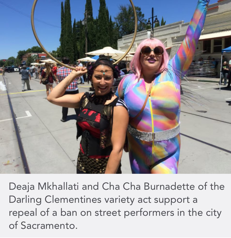 “Without a leader like burlesque dancer ChaCha Burnadette, Sacramento would not enjoy the kind of spice her dance group, the Darling Clementines, adds to the mix. The group’s founder, a card-carrying, flag-waving champion of the queer community, has been a part of the scene for a decade, hosting burlesque and drag shows at local venues like Harlow’s, Marilyn’s on K, Blue Lamp and Holy Diver.”- Casey Rafter