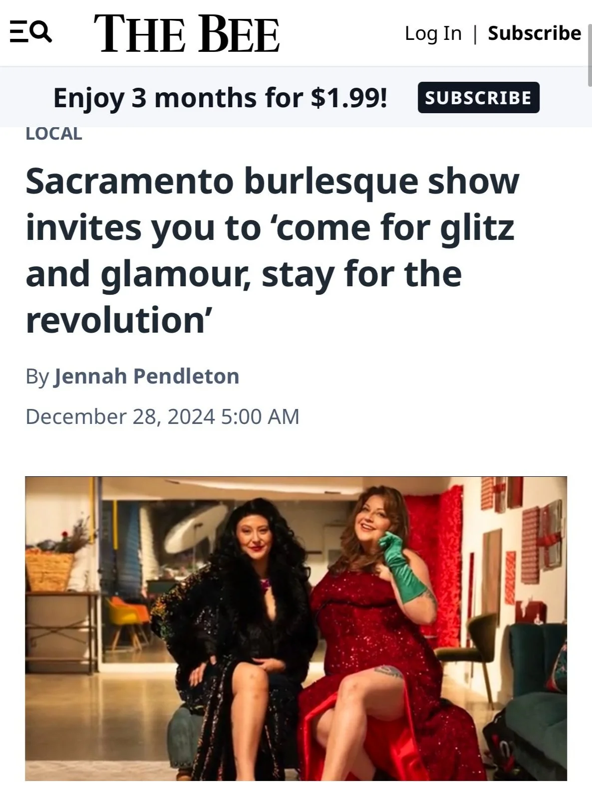“Sexy” alone isn’t what has allowed Burnadette and the Darling Clementines, the Sacramento-based burlesque and drag troupe she founded, to not only survive, but thrive for over a decade. Instead, Burnadette and co-producer Deaja Girl on Fire attribute the Darling Clementines’ magic to the strongly held beliefs it was built upon: female empowerment, body positivity and queer joy.”-Jennah Pendleton for The Bee